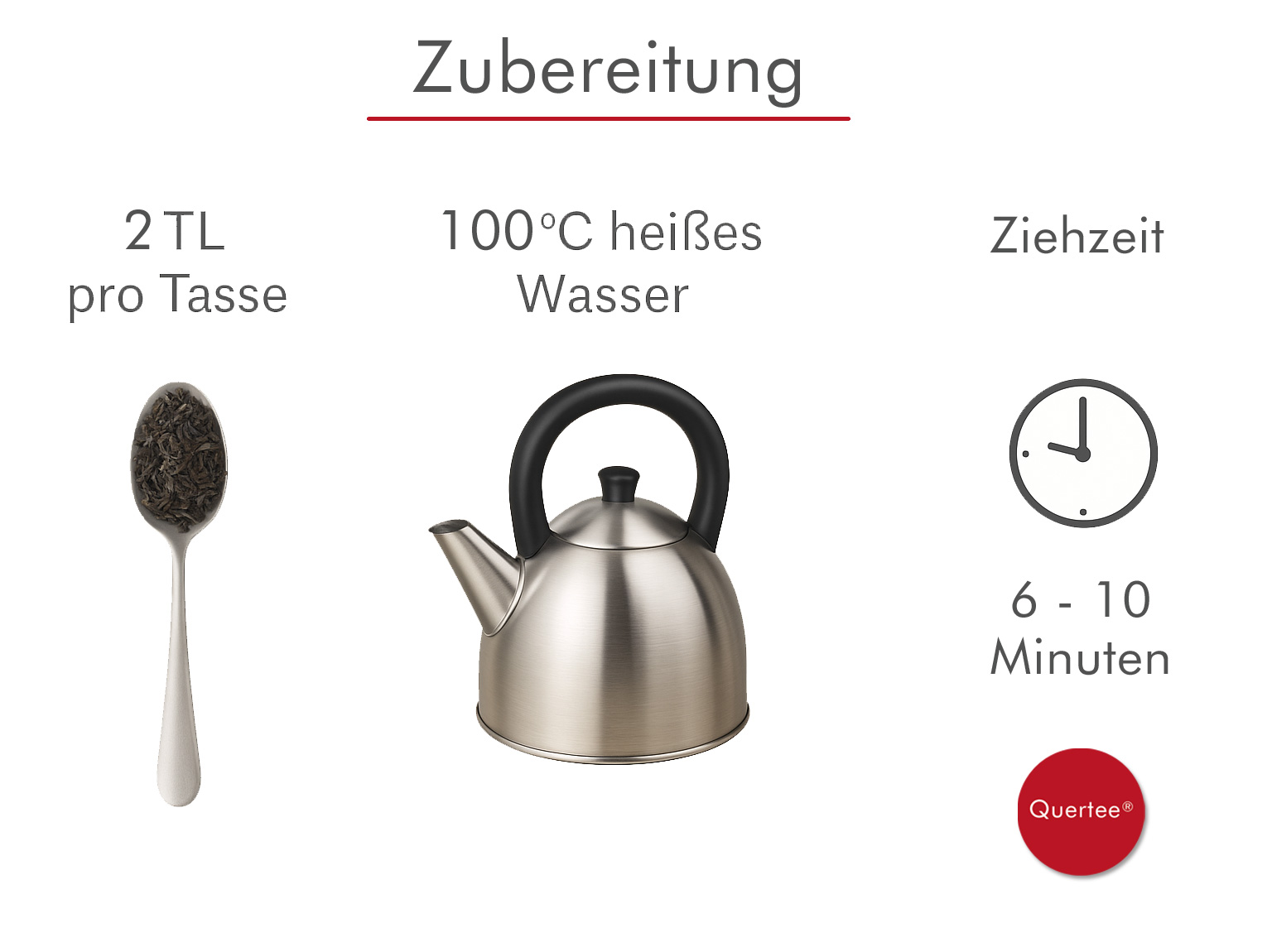 Zubereitung: Wichtiger Hinweis: Nehmen Sie 2 TL Tee für eine Tasse (ca. 200 ml). Immer mit sprudelnd kochendem Wasser aufgießen und mindestens 8 - 10 Minuten ziehen lassen! Nur so erhalten Sie ein sicheres Lebensmittel!
