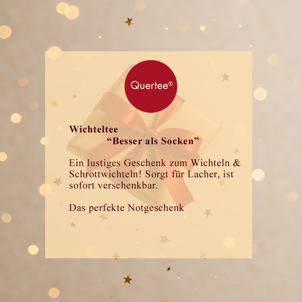 Der Quertee Wichteltee „Besser als Socken“ bringt garantiert Stimmung in jede Runde.