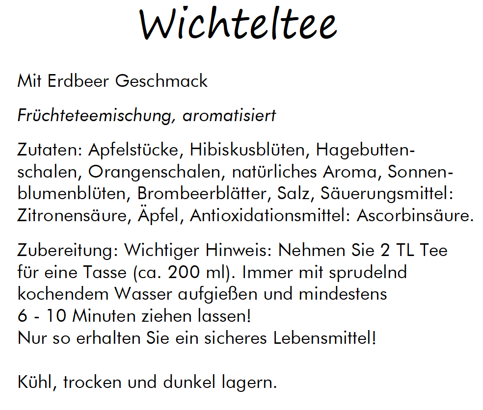Zubereitung: Wichtiger Hinweis: Nehmen Sie 2 TL Tee für eine Tasse (ca. 200 ml). Immer mit sprudelnd kochendem Wasser aufgießen und mindestens 6–10 Minuten ziehen lassen!